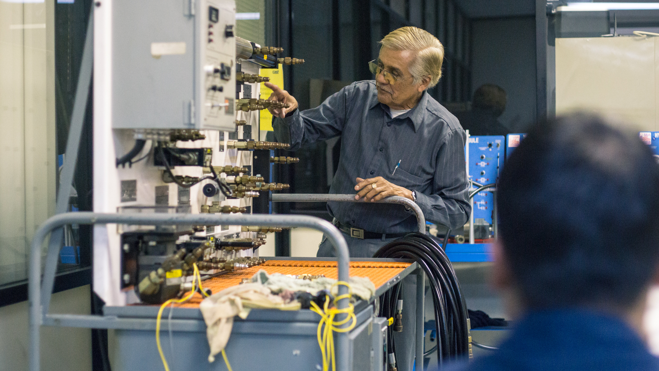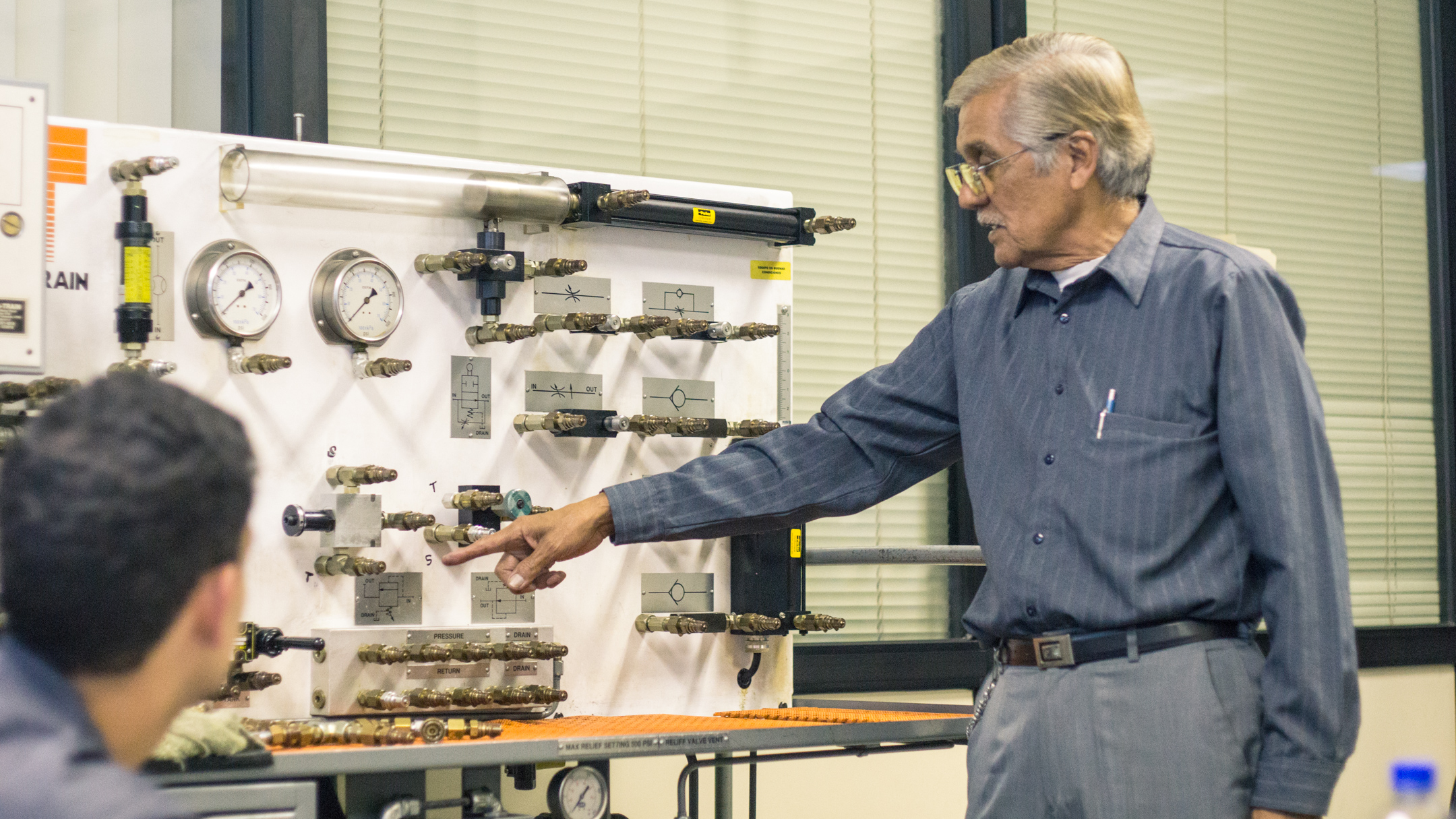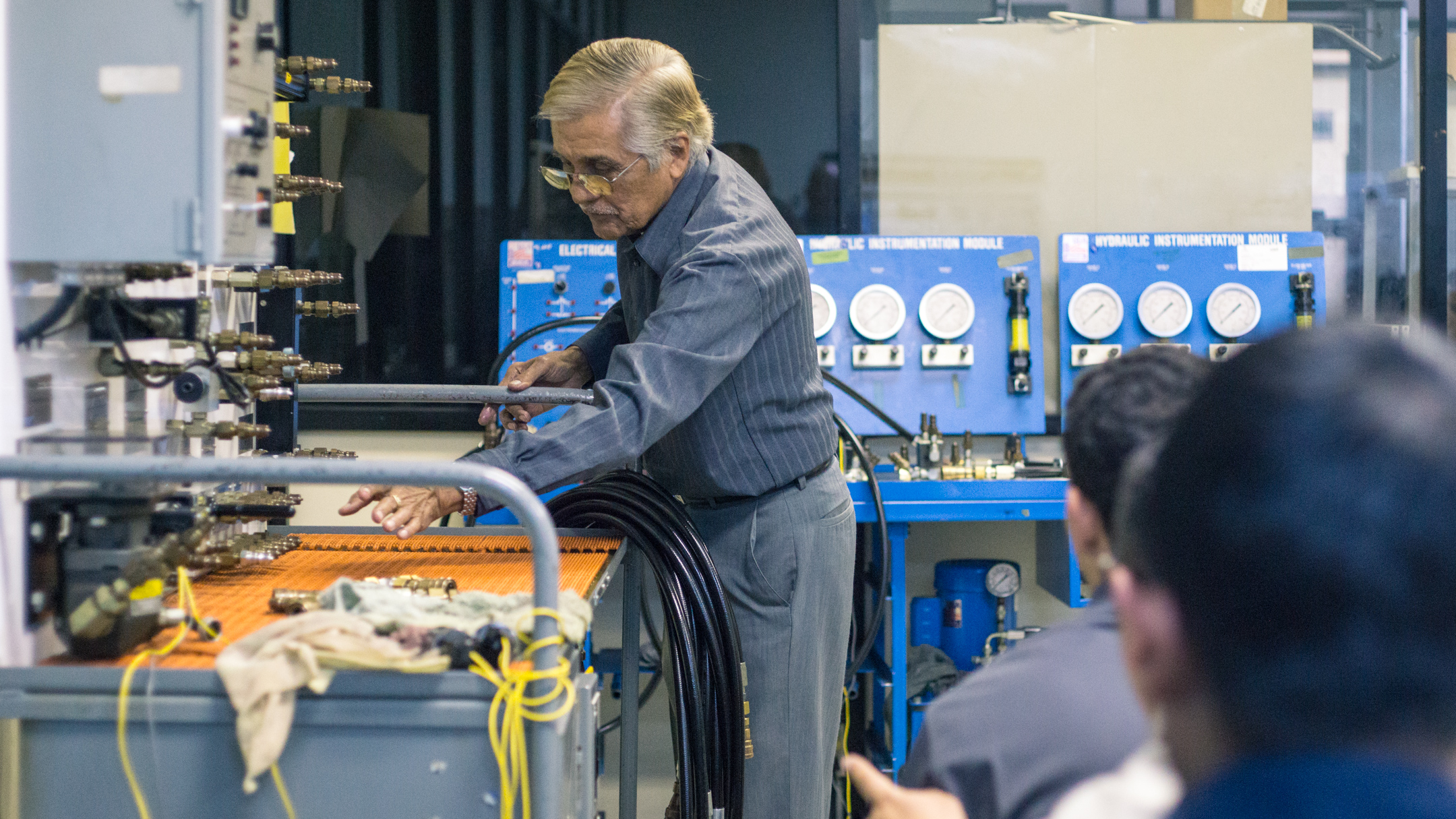 Mesa de trabajo con instrumentación hidráulica Parker.